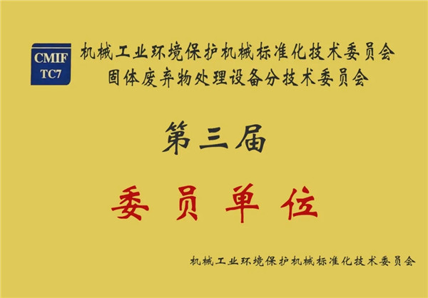 隆基得到行业认可,再次当选机械工业环境保护机械标准化技术委员会固体废弃物处理设备分技术委员会委员单位。