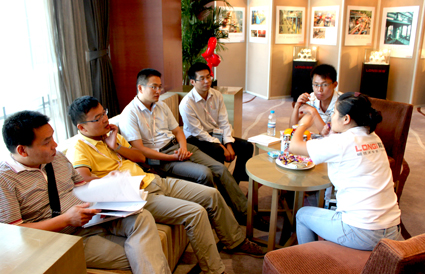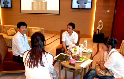 贵宾室中隆基工作人员与参会代表洽谈