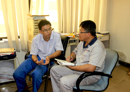 “2011年时由于现场操作原因,甲侧除铁器皮带被损坏需要更换。当时也是考虑时间成本因素,所以就在当地买了一条换上了,没有跟你们联系更换原厂皮带,结果再次运行后皮带一直跑偏调不回来,运行情况也不如以前了。我们考虑可能是新换的皮带与设备不符,所以决定请你们按照原有形式恢复出厂时的配置。”雷主任提出电厂的需求后,隆基工作人员告诉他说,蒲山电厂使用的除铁器还是一代产品,现在已更新到第四代,建议电厂考虑更换新设备。雷主任笑着回复说,“你们的设备使用效果一直不错,除了甲侧除铁器因为操作原因更换过配件,乙侧除铁器更是连一次配件都没有换过。我们只要求把甲侧除铁器恢复到原来的状态就可以了,完全可以满足我们的现场需要,为什么要更换呢?”