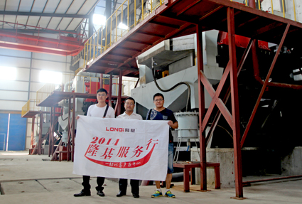 2014年8月9日,隆基服务行工作人员赶到河北承德进行现场采访及服务。据了解,此次采访现场为长石选矿现场,采用多种选矿工艺流程,现场选用8台隆基立环强磁选机及湿式筒式磁选机等设备。这是一家现代化新型矿山企业,负责人向我们介绍,在建厂初期企业领导就对环保方面非常重视,从工艺流程设计到设备选配,甚至厂区环境建设都要符合环保标准,力争打造一个现代化的环保型矿山企业。隆基作为业内知名的设备生产商受到他们的关注,经过与同类设备的严格比对,最终选择了在环保节能、专业服务方面更具优势的隆基产品。