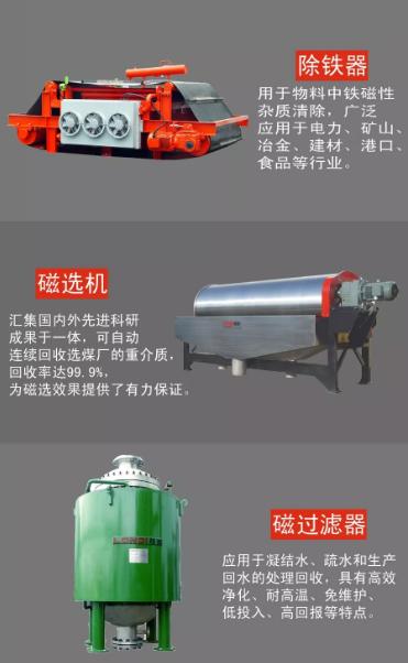 公司创立初,就以除铁器为切入口,成功进军磁选装备制造领域,经过不断地研发创新,拥有了完善的产品体系,满足了煤炭、电力、化工、造纸、建材、港口、食品等行业不同的磁选需求。