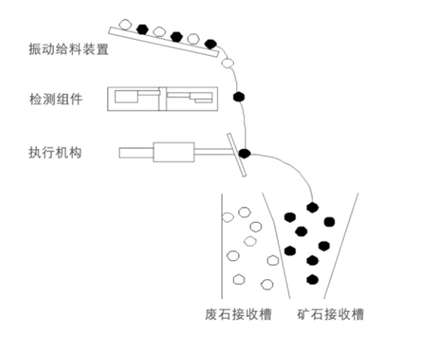 LPPC分选机就是根据X射线荧光原理设计的,其分选的工作原理如下图。