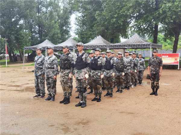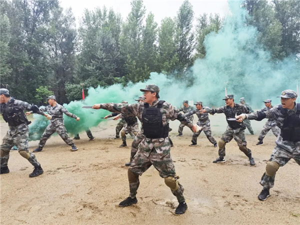 活动中,军训学员进行了集体队列动作展示、匍匐刀方阵、特种战斗表演。