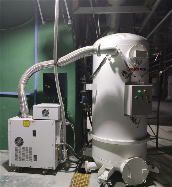 2016年,为确保单晶炉运行,解决安全、有效回收单晶硅粉尘难题,隆基通过潜心研发,精心打造出单晶硅除尘器。