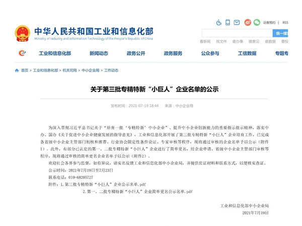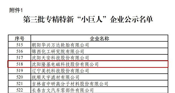 日前,国家工信部对外公示《第三批专精特新“小巨人“企业名单》,隆基电磁榜上有名,成功入选。