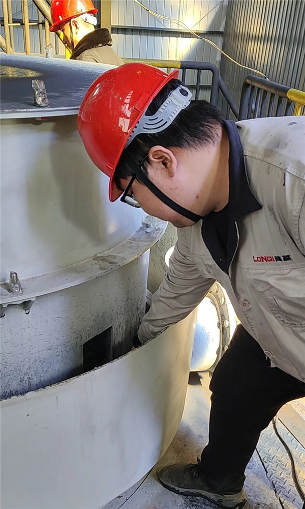 隆基工程师正同客户方技术人员、操作人员加强设备调试,并将定期协助客户做好维护工作,保证设备长期无忧运行。