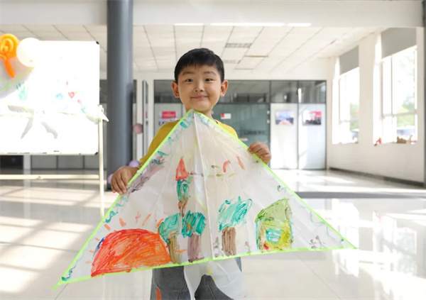 活动现场,为孩子们分发了空白风筝、颜料和画笔等材料。孩子们脑洞大开,发挥想象力在风筝上设计他们的涂鸦,与家长一起手绘炫彩的风筝,随着笔下色彩渐丰,一个个色彩鲜明、栩栩如生的风筝作品跃然而生。