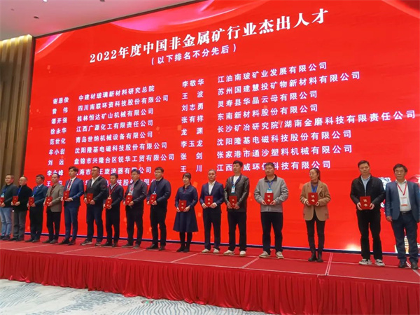 凭借在非金属除杂提纯方面的出色贡献,隆基得到了主办方的高度肯定,荣获“2022年度中国非金属矿行业优秀设备企业”;隆基非金属领域资深工程师牟小岩、李玉龙荣获“2022年度中国非金属矿行业杰出人才”称号。