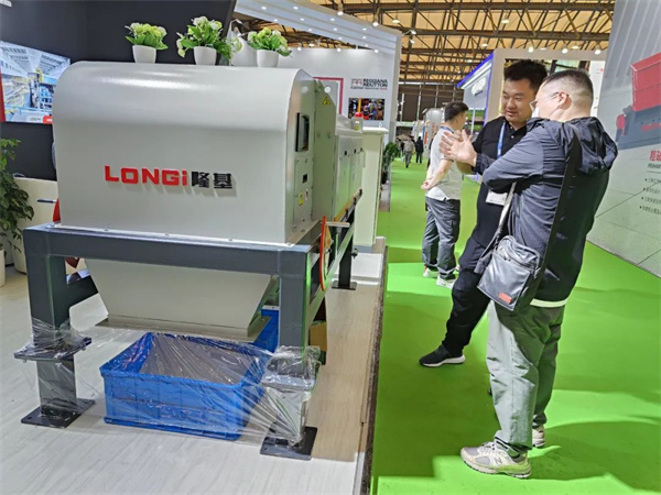 在隆基展区,嘉宾们对隆基自动分选线工艺表达了浓厚兴趣,洽谈咨询客商络绎不绝。