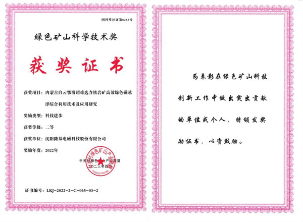荣誉属于过去,认定只是起点!隆基电磁在矿山领域厚积薄发,以自有核心技术与高效、绿色的产品实战表现,持续为客户赋能,助推客户绿色化转型,推动国家矿山永续发展。